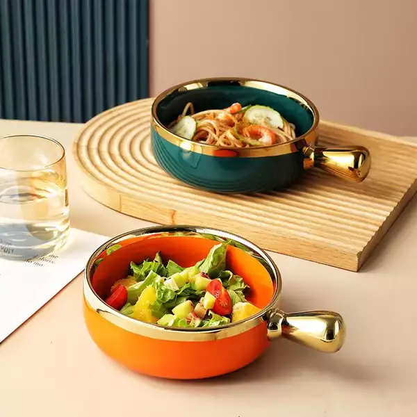 Bát sứ cách nhiệt có tay cầm có thể sử dụng được cho lò vi sóng và lò nướng
